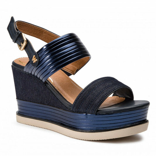 Scarpe donna WRANGLER art. WL91655A sandalo zeppa alta in tessuto navy casual