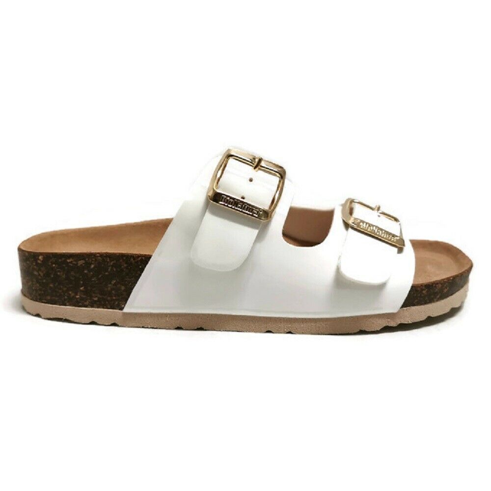 BioNatura - Art.94HESISD-VERBIA -Colore vern bianco doppia fibbia ciabatta Donna