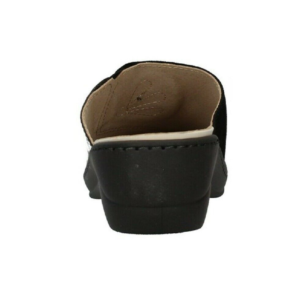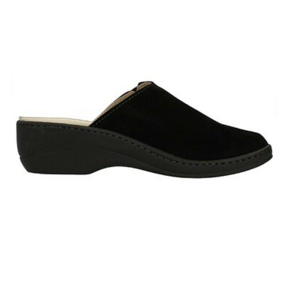 Queste ciabatte Cinzia Soft sono realizzate in una tomaia misto in camoscio e pelle nera lucida con cuciture a contrasto. La fodera e il sottopiede in pelle accolgono delicatamente il piede donando benessere e comfort pe tutto il giorno. Il plantare è estraibile e può essere sostituito in base alle vostre esigenze. Il tacco ideato in un'altezza di 5 cm, fa sì che non venga mai a mancare il buon sostegno per la schiena e le articolazioni. Il fondo in gomma garantisce a chi la indossa una maggiore aderenza alle diversi superfici donando cosi maggiore sicurezza nelle attività domestiche.