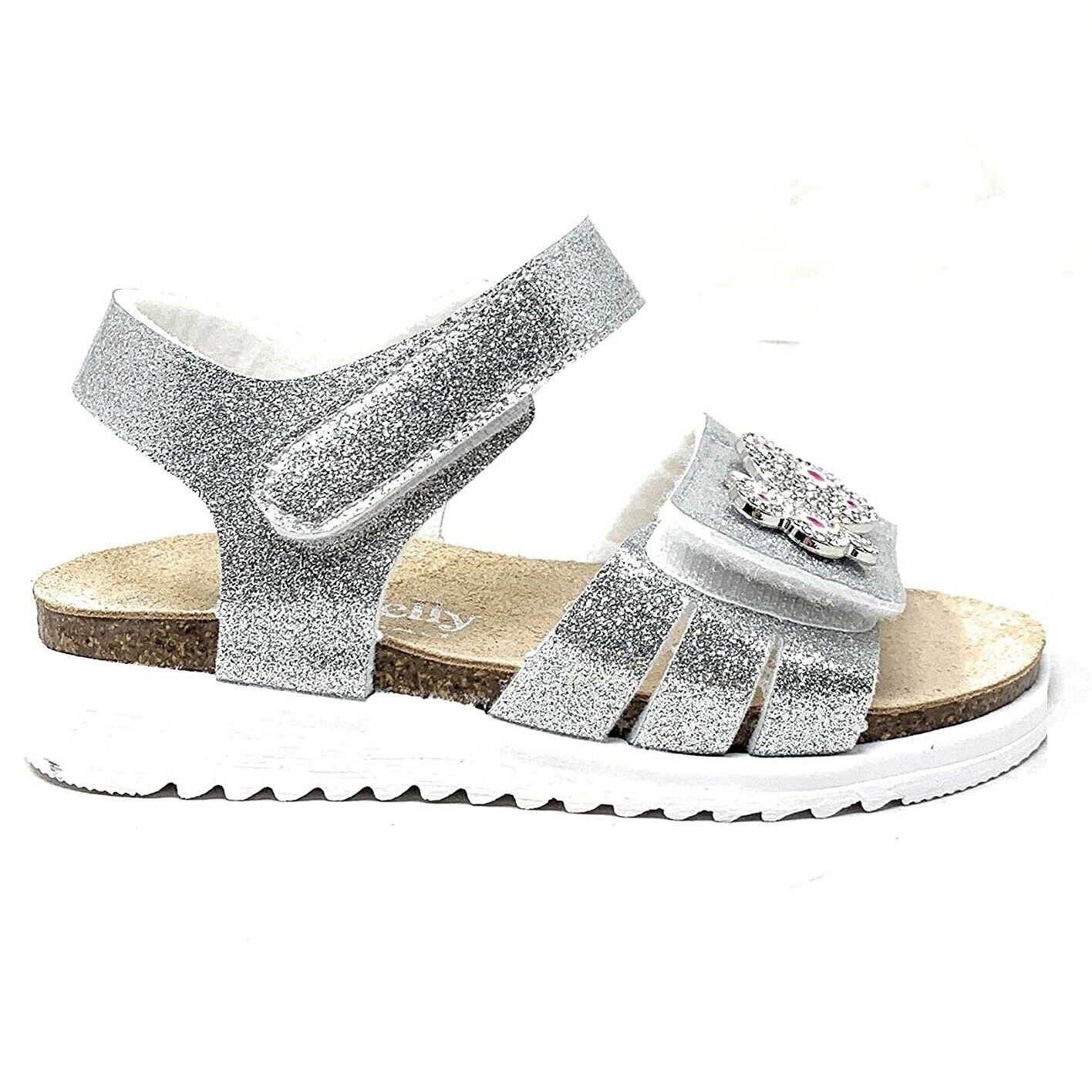 il design dei sandali Lelli Kelly è il più amato dalle bambine ed ogni suo dettaglio è realizzato artigianalmente e quindi ogni paio è unico!! La tomaia è composta da un materiale tecnico glitterato che rendono sempre la scarpa luminosa e appariscente, le decorazioni sono ricamate a mano, il cinturino prevede una chiusura alla caviglia regolabile con strappo, la fodera e la soletta sono 100% in pelle e la suola è in gomma con battistrada antiscivolo.