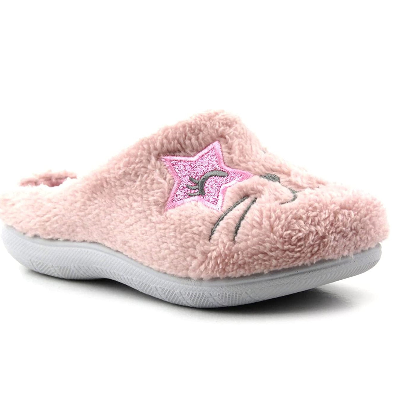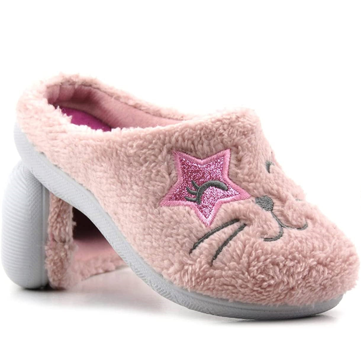 Pantofoline leggerissime con sottopiede in morbido tessuto imbottito. Qualcuno ha detto gattini? Ecco la pantofola perfetta. USO - Queste ciabatte da casa sono leggerissime e flessibili, grazie al morbido sottopiede in tessuto imbottito si adattano facilmente al piede dei più piccoli, assicurando comfort ad ogni passo. CARATTERISTICHE - Materiale tomaia: tessuto, Materiale plantare: tessuto imbottito, Materiale fodera: tessuto, Materiale suola: sintetico, Altezza tacco: 2,5 cm, Altezza plateau: 1,5 cm.