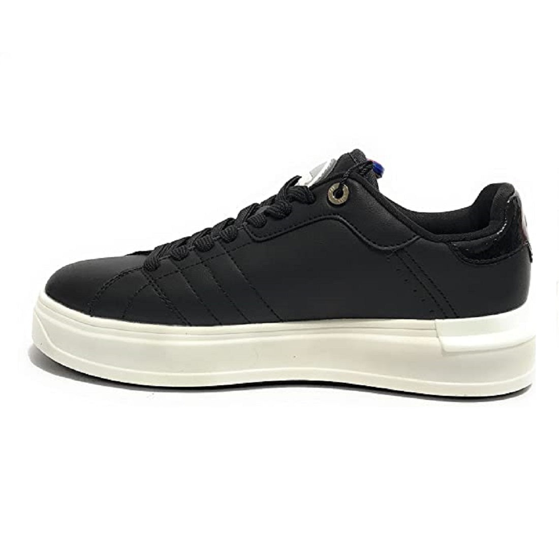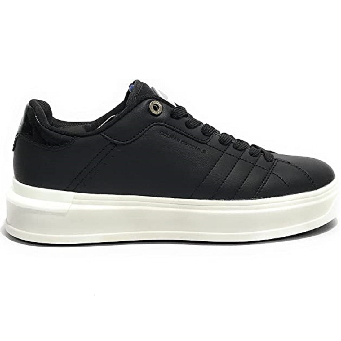 Scarpe da donna Sneakers Colmar modello Clayton Bleach. Realizzata in ecopelle di colore nero. Lacci di colore nero. Fondo in gomma bianca. Interno foderato in tessuto. Fusbet estraibile rivestito in tessuto memory foam. Calzata regolare. tacco 3,0 cm. plateau 2,3 cm.