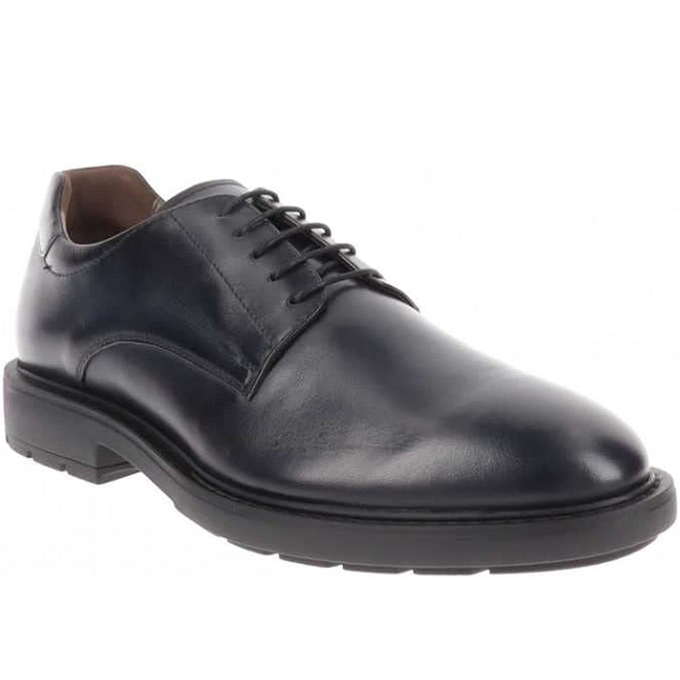Scarpe eleganti per Uomo NeroGiardini realizzati in pelle blu scuro. Allaccio tramite lacci con 5 passanti Fodera in pelle marrone, sottopiede estraibile in pelle marrone, fondo in gomma nero