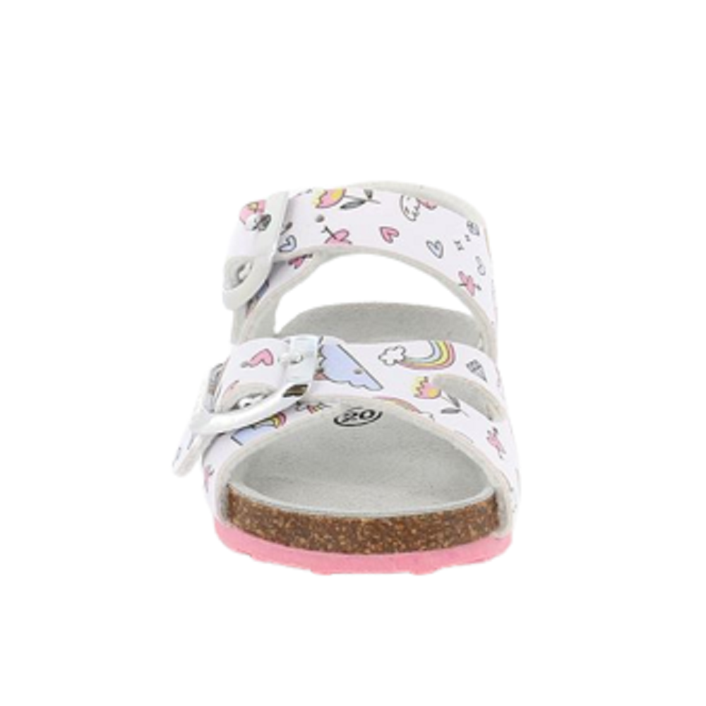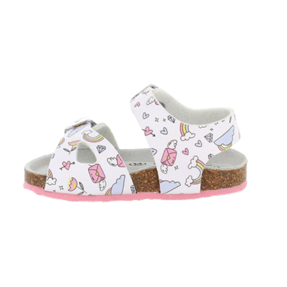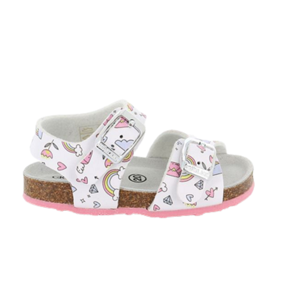 Sandalo da bambina con tomaia in più e dettagli a contrasto. L'articolo SB1803 40AFRE ha il sottopiede in pelle e il fondo in gomma.
