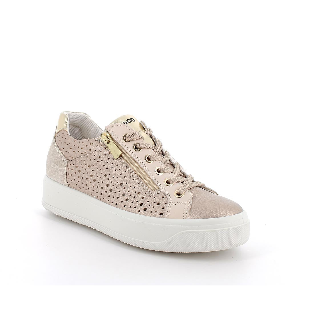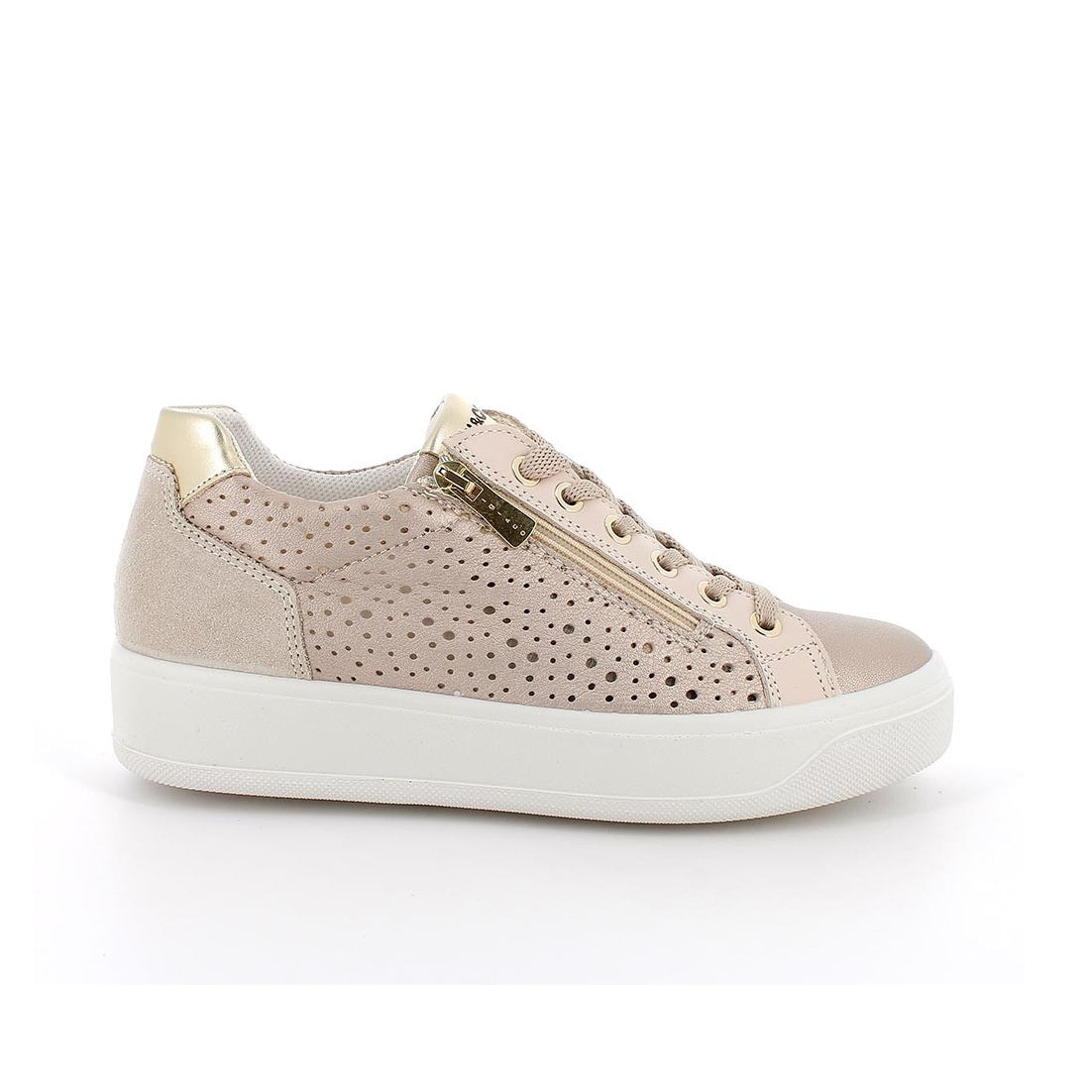 La sneaker con zeppa IGI&CO modello 76564 in colore champagne è la scelta perfetta per la donna che ama unire eleganza e comfort in un'unica calzatura. La raffinata tonalità champagne dona un tocco di luminosità e versatilità, ideale per completare sia look casual che outfit più sofisticati.