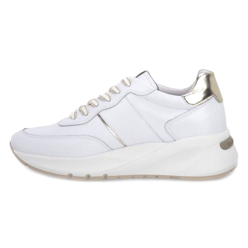 Sneakers con zeppa da donna Nero Giardini con chiusura con lacci e soletta estraibile in tessuto, caratterizzate dalla suola robusta che assicura un comfort permanente. La tomaia in pelle di altissima qualità garantisce resistenza e freschezza. Un design semplice ed essenziale rende queste calzature perfette per accompagnarti con stile ad ogni passo.