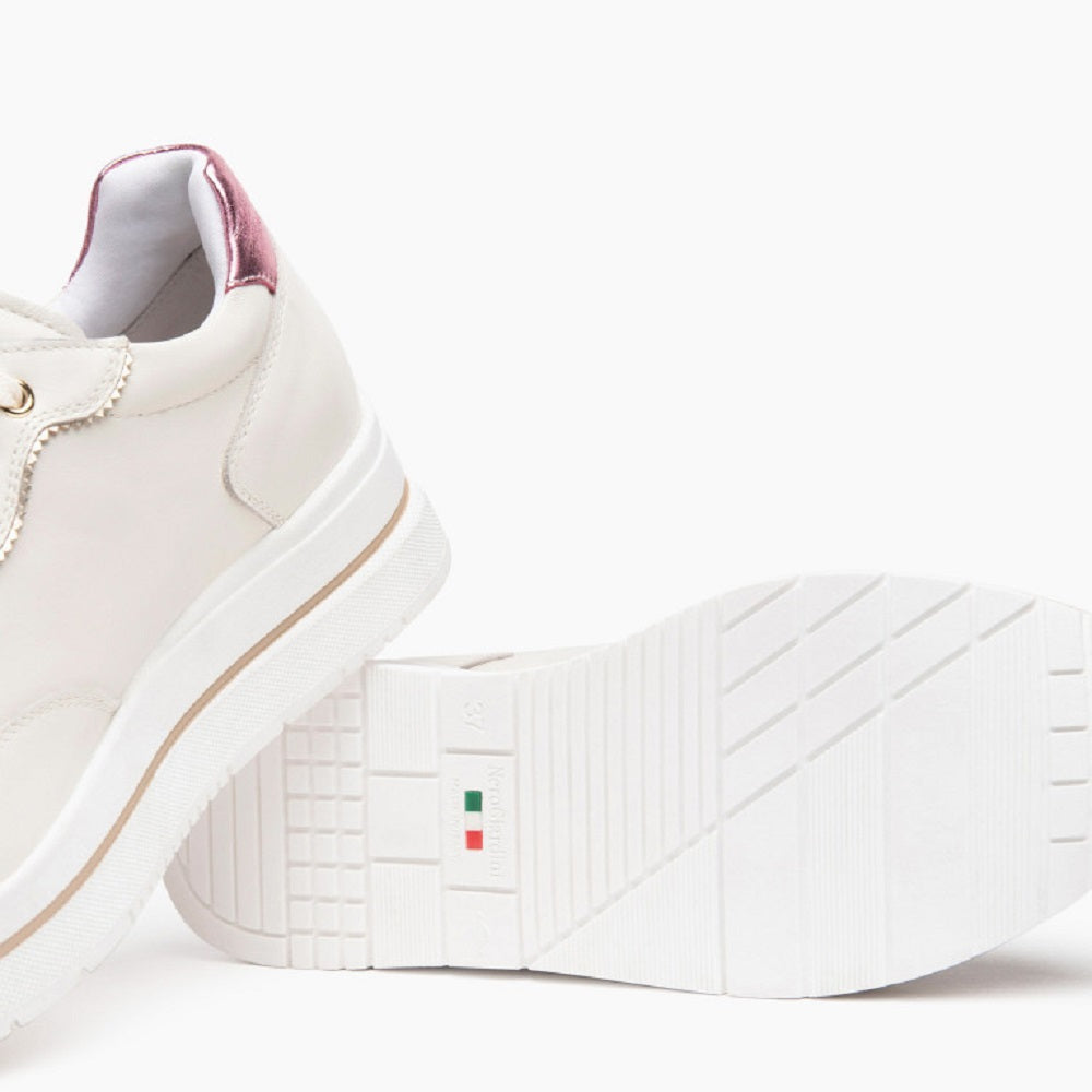 Le Sneakers Platform Donna Avorio di NeroGiardini sono il perfetto connubio tra eleganza minimalista e praticità contemporanea. Queste sneakers avorio si adattano facilmente a diversi stili. Per un look casual-chic, abbinale a jeans a vita alta e una camicia morbida. Per uno stile più raffinato, provale con pantaloni culotte e un blazer in tonalità neutre. Per un tocco sporty-chic, accostale a una gonna plissettata e una T-shirt minimalista. Sono perfette anche con un abito chemisier per un outfit fresco e contemporaneo. Ideali per passeggiate in città, giornate di shopping o brunch con le amiche, queste sneakers sono adatte anche per contesti semi-formali come un casual Friday in ufficio o un aperitivo serale.