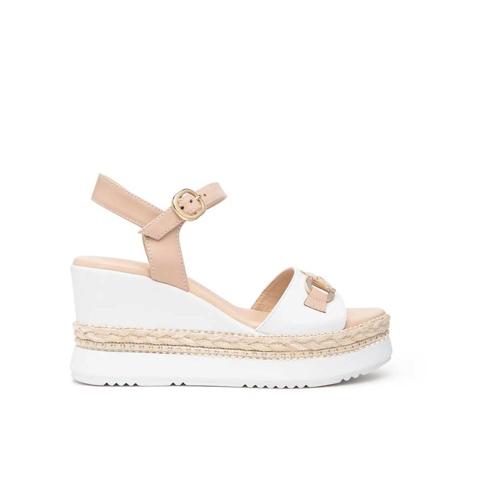 Nero Giardini sandalo Made in Italy donna in pelle con accessorio sulla fascia, cinturino regolabile alla caviglia, fodera e sottopiede in pelle, fondo con zeppa in gomma e banda in corda.