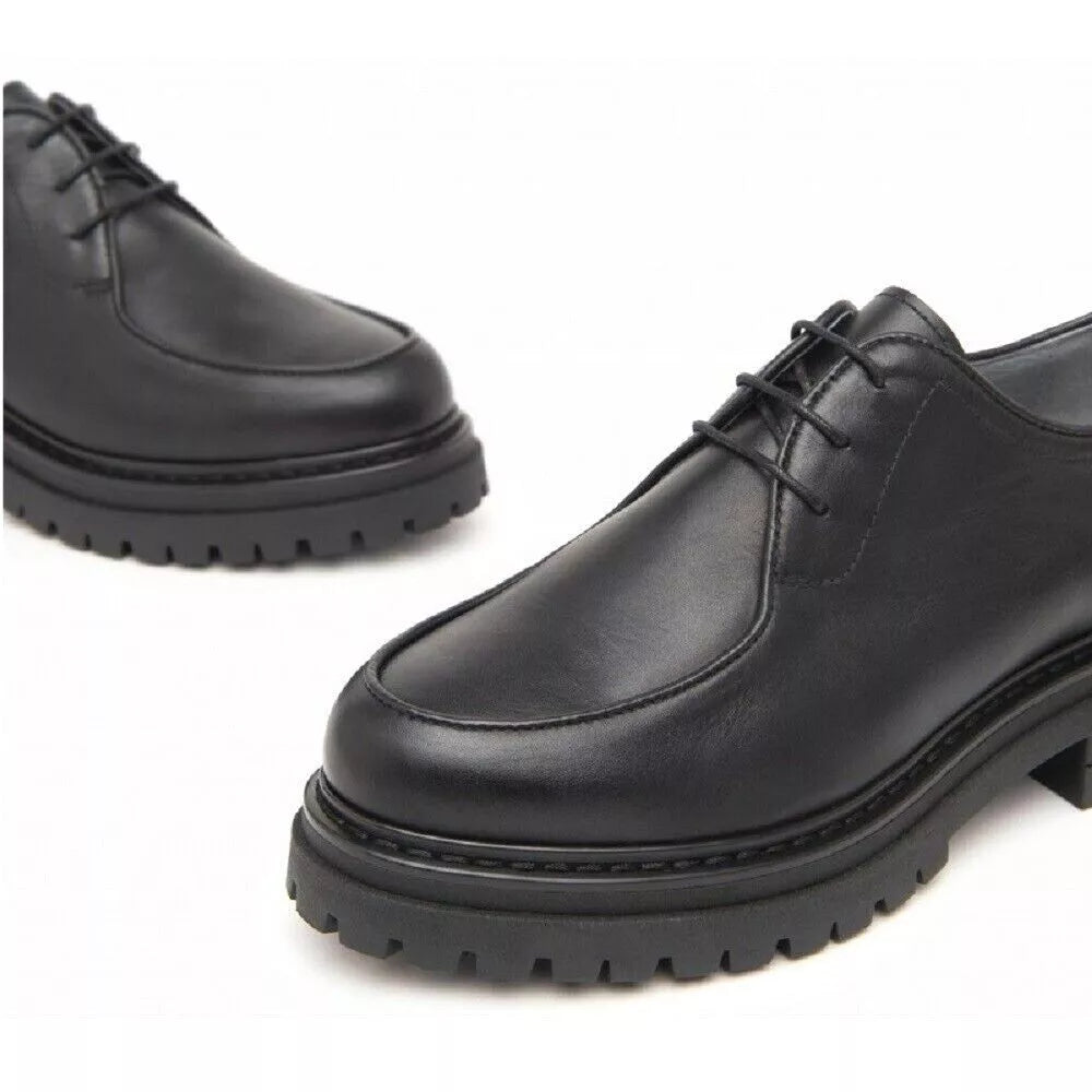 Stringate da donna nere in vera pelle dotate di fondo roccia alto circa 4 cm.