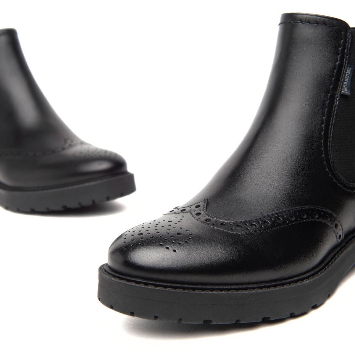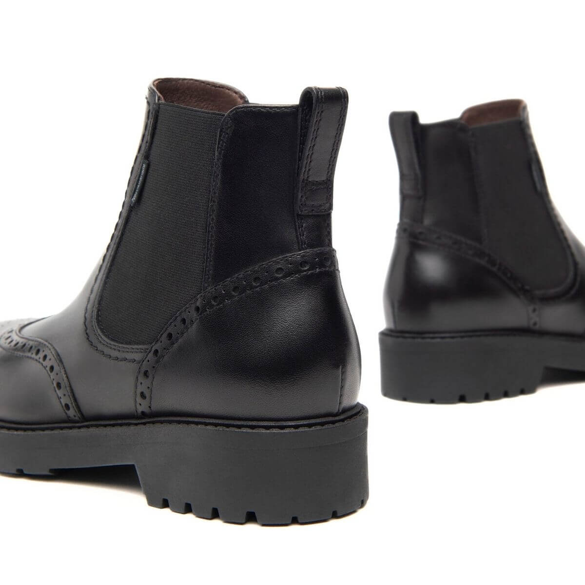Personalità e stile unico. Realizzato in pelle color nero con elastici laterali per una calzata veloce e facile e puntale a coda di rondine. Interno e sottopiede, non estraibile, in pelle. Suola in gomma.