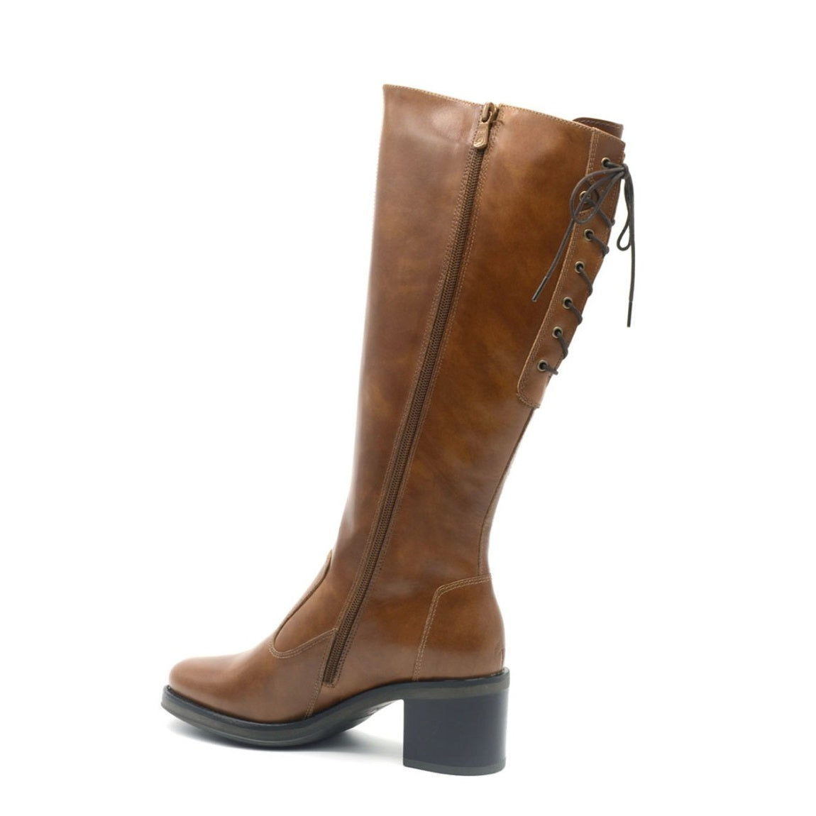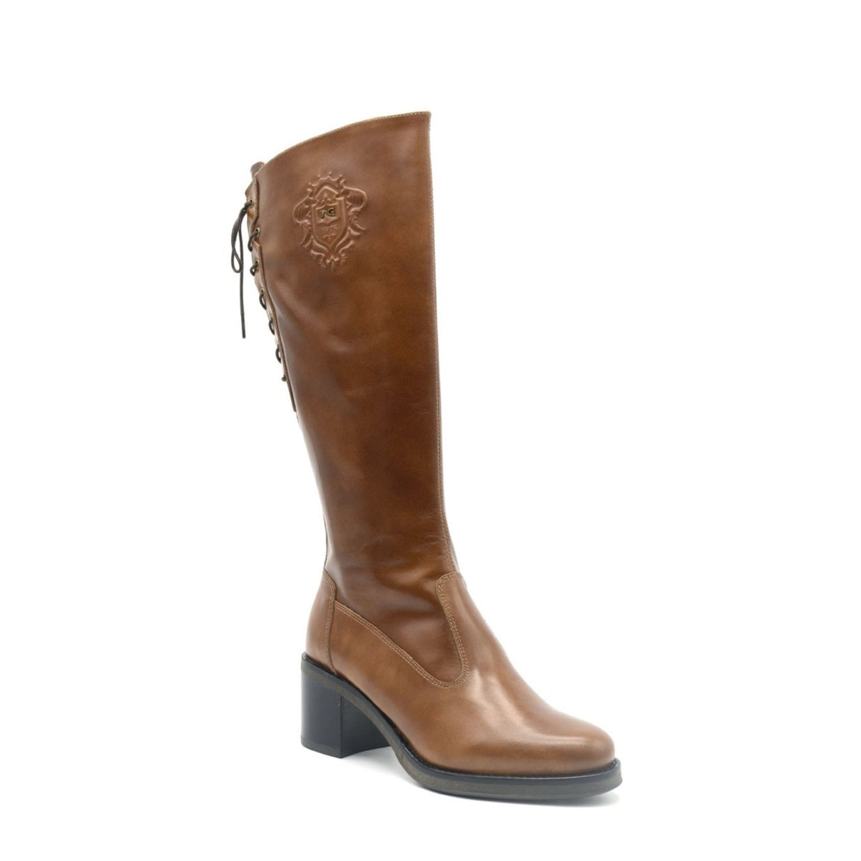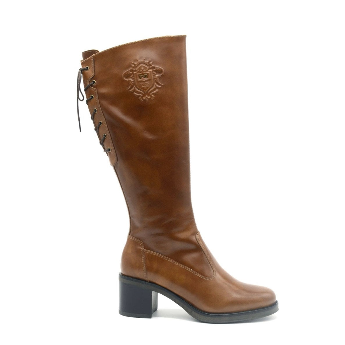Nero Giardini stivale Made in Italy donna in pelle con logo metal laterale, stringhe regola polpaccio e zip interna, fodera e sottopiede in vera pelle, fondo in gomma con tacco medio.