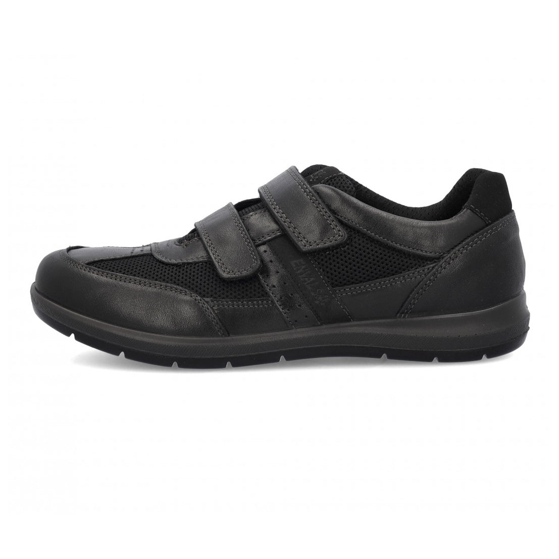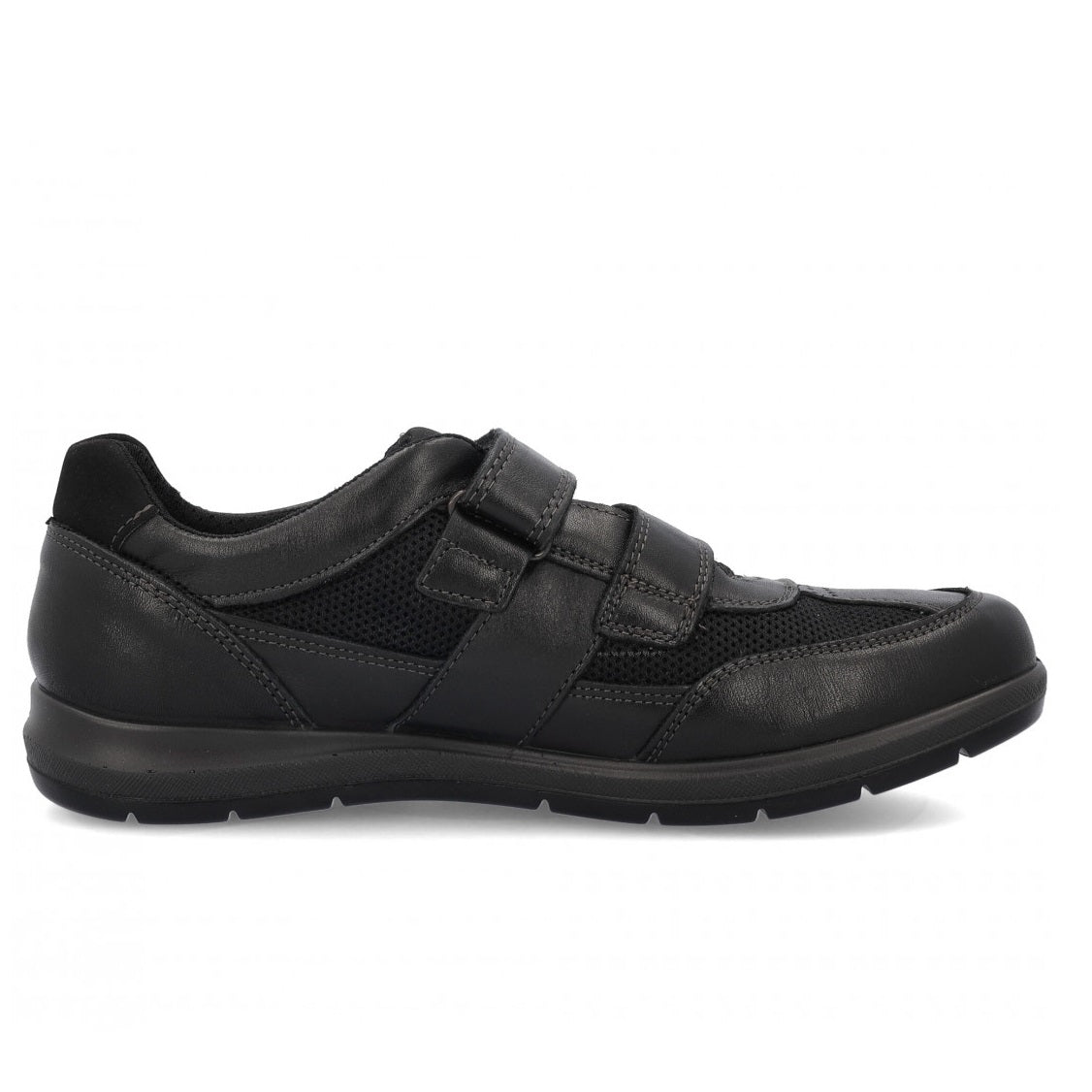 Scarpa casual Enval Soft da uomo in morbida pelle nera con doppio stretch, fodera in tessuto e sottopiede estraibile in pelle. Soletta con memory foam e fondo in gomma antiscivolo.
