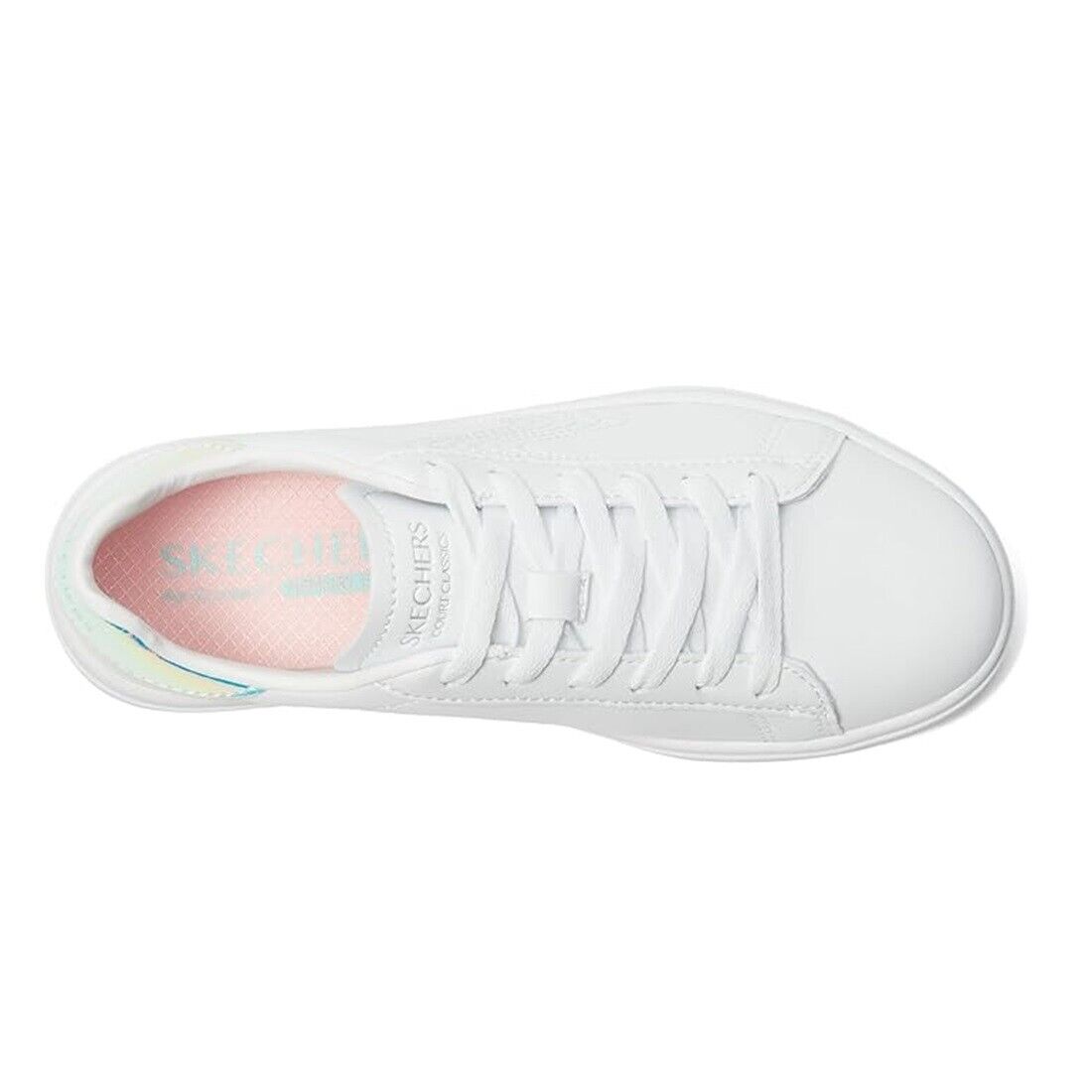 Skechers Eden LX è la scelta perfetta per un look trendy e comodo. La tomaia in duraleather iridescente, il ricamo sul gambino e la soletta Air-Cooled Memory Foam® garantiscono un'esperienza di comfort e stile. Non lasciarti sfuggire questa scarpa con lacci per la tua ragazza.